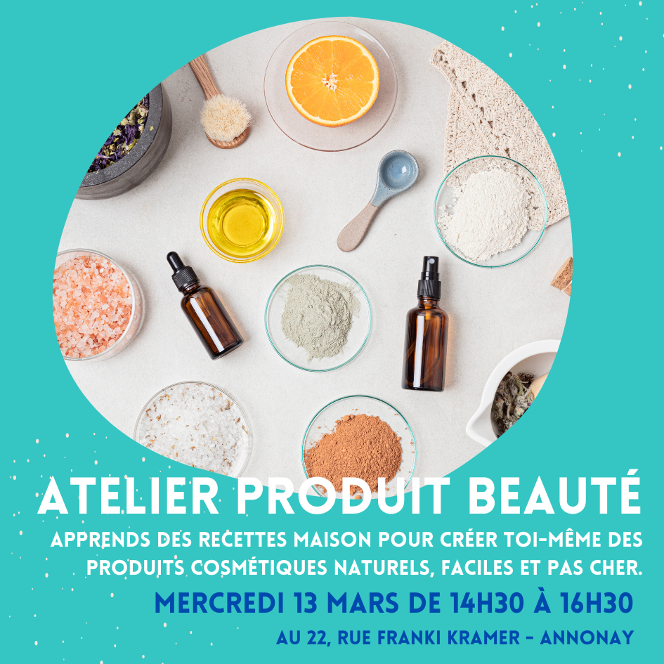 Intéressé.e par l’écologie et le faire soi-même? Cet atelier est pour toi ! > Atelier sur la création de produits cosmétiques maison < Apprends des recettes maison pour créer toi-même des produits cosmétiques naturels, faciles et pas cher. 13 mars de 14h30 à 16h30 au 22, rue Franki Kramer - Annonay + d'infos : cafeassociatif@26fk.fr - 04.75.69.35.01 |